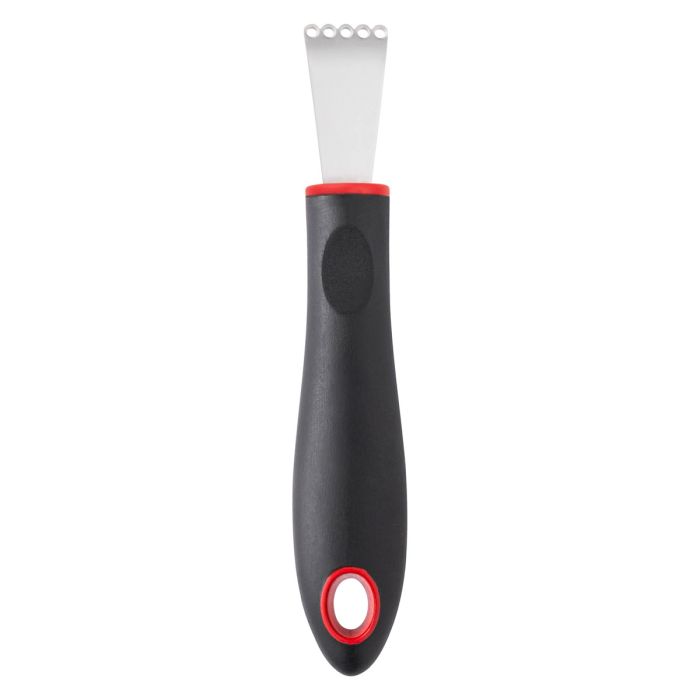 This Citrus Zester is a versatile addition to your kitchen tools. Cut very fine strips of citrus rind from oranges, lemons, and limes for neat and decorative garnishes without the bitter pith underneath. Add these to finish desserts, baked goods, hot chocolate, coffee beverages, and craft cocktails.