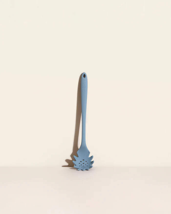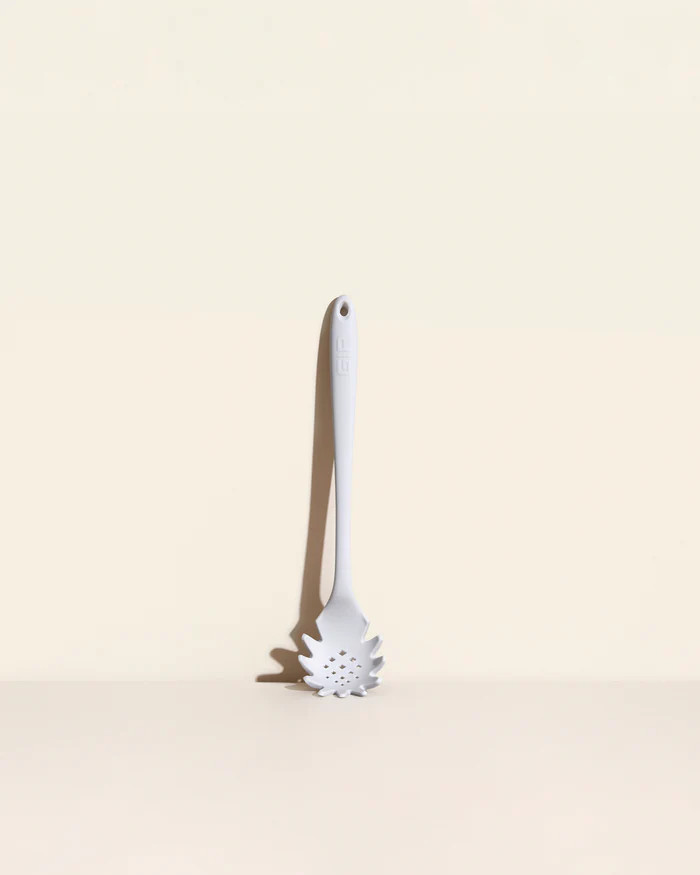 The well-designed spaghetti spoon retrieves and drains fettuccine, penne, fusilli, ziti, spaghetti, and more from bowls or pots. The teeth are spaced for maximum scooping efficiency and perforations drain liquid. It features an ergonomic handle and a flexible head to reach into the corners of your pot. Pasta goes from pot to plate with this spaghetti spoon.