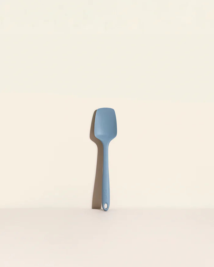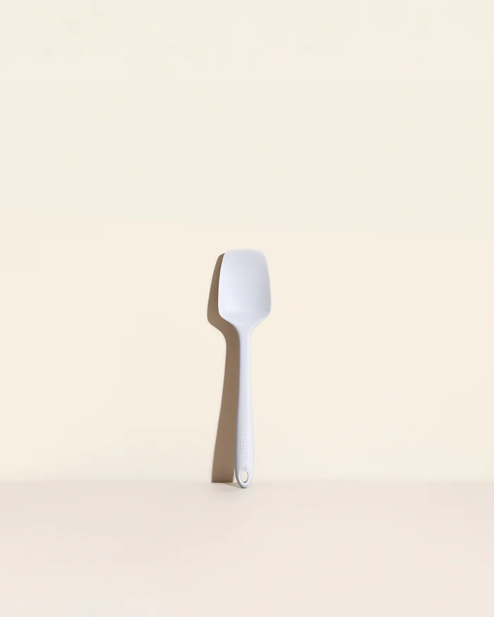 If you mix a spoon with a spatula, you get a Spoonula which does it all. This one has a sharp edge for scraping and precise scooping. And it features a wide, extra-deep bowl for heavy stuff with perfect flexibility at the blade.