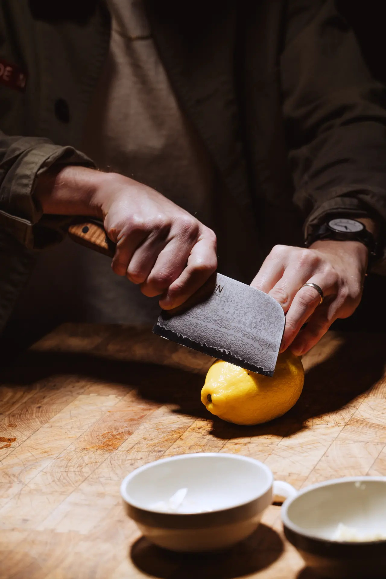Forged in Seki City, Japan, a region with over 800 years of blade-making heritage, our Limited Edition Kamagata Knife pairs centuries-old craft with modern versatility. Its blade is made from VG-10 stainless steel Damascus, folded into 66 layers for exceptional edge retention, strength, and a wave pattern unique to each knife. Finished with a rot-resistant Moabi Wood handle and an exclusive mosaic pin, the Kamagata is as striking as it is functional.