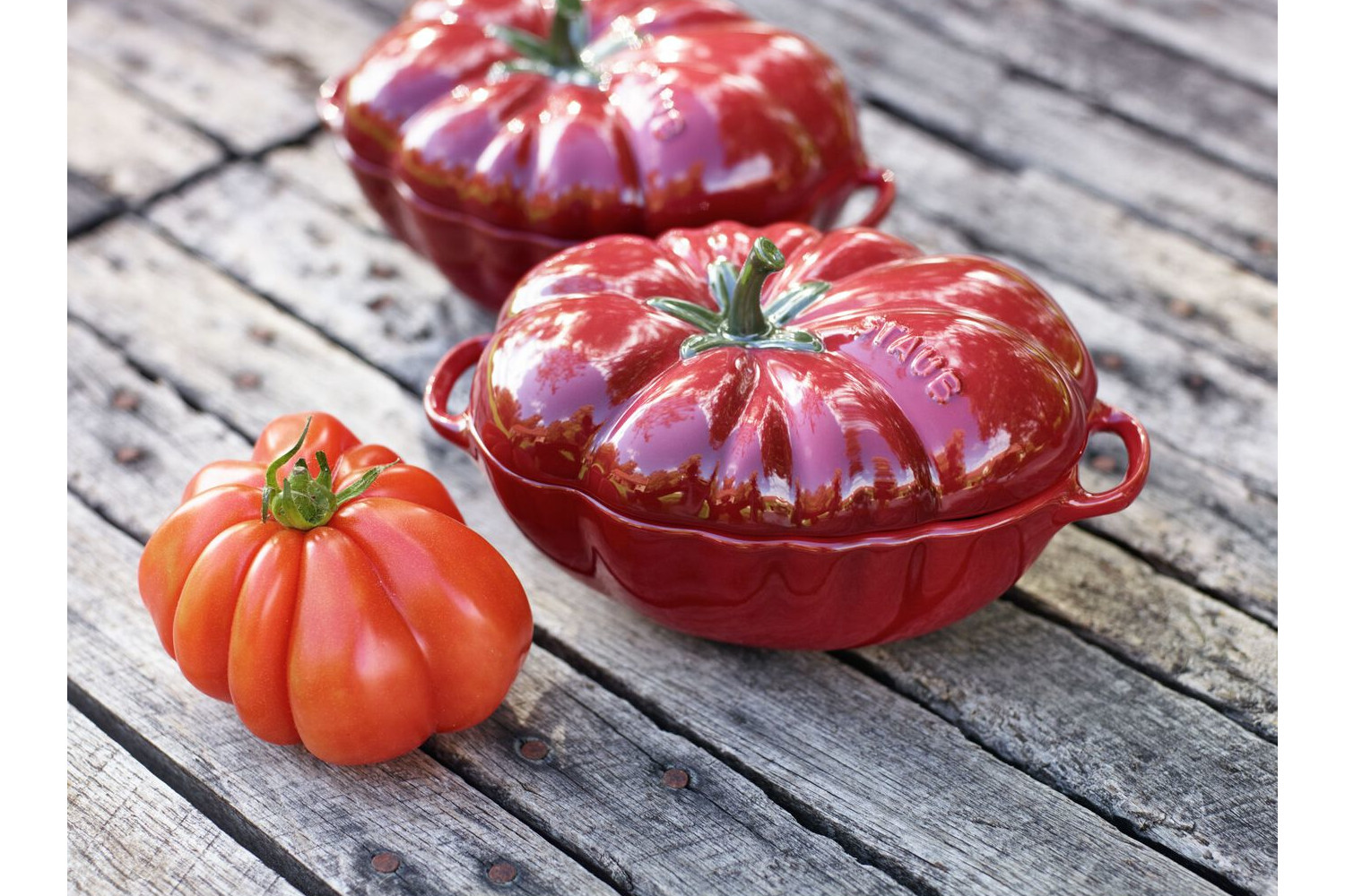 A festive but also functional addition to your stoneware collection, the tomato cocotte has the oven to table elegance you expect from Staub. The porcelain finish, artistic design, and exceptional quality make it perfect for baked appetizers and dips.