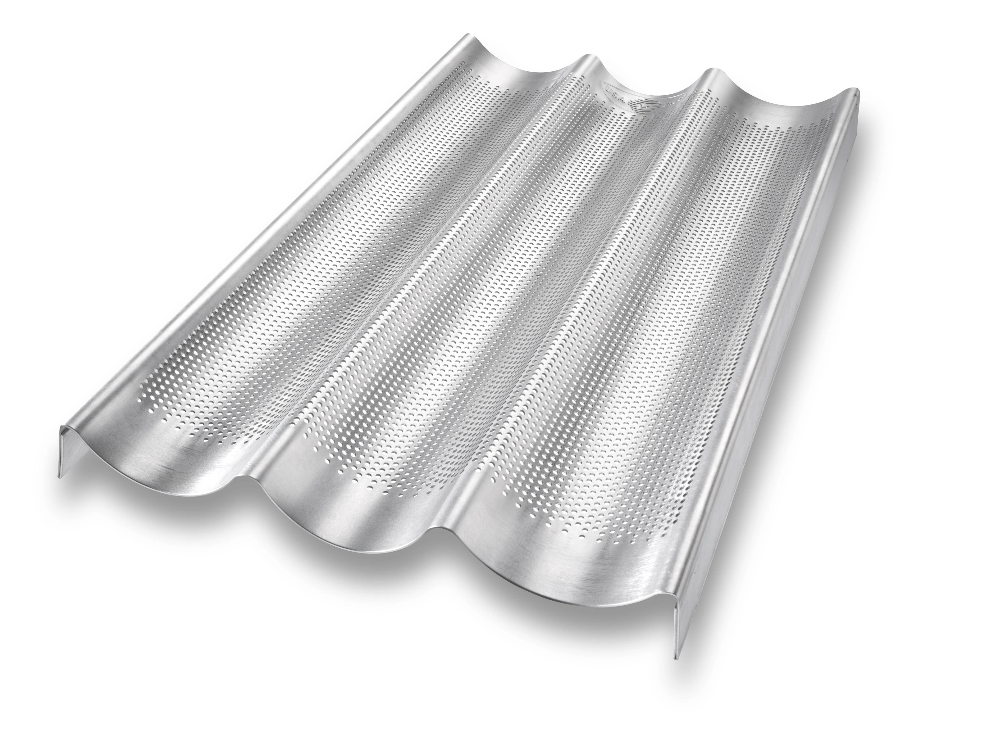 USA’s 3-well perforated French loaf pan offers home bakers with an easy way to bake warm, fresh French bread. The perforated design gives even heat circulation, faster baking, and a crispy crust. Your French breads will have a thin, crispy, crunchy crust and slightly chewy center perfect for bruschetta, French toasts, grilled cheese sandwiches, or just a delicious slice with butter. AMERICOAT coating, a non-stick silicone, means easy release of your baked goods from the pan. It is made without PTFE, PFOA, and BPA. USA pan’s professional grade bakeware means everyday home bakers can produce professional grade baked goods.